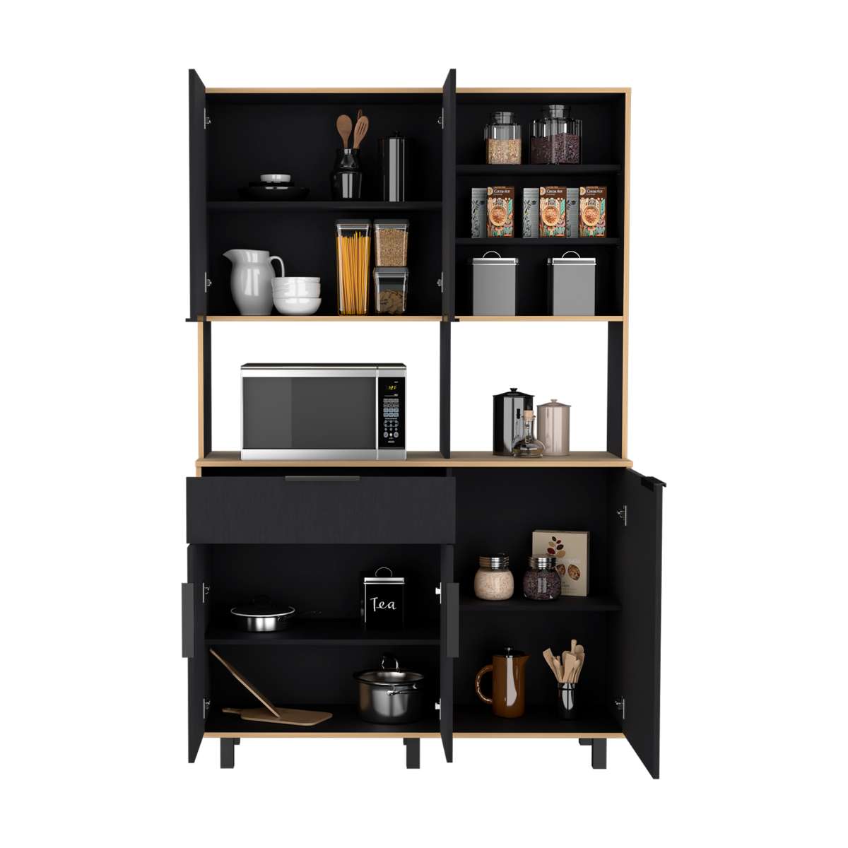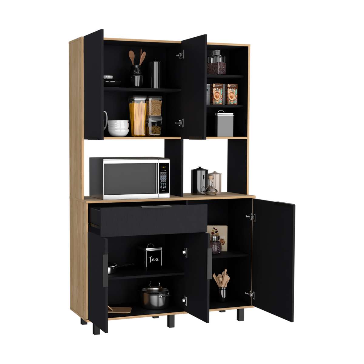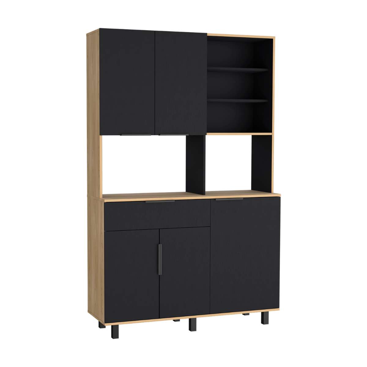 Alacena con amplios espacios para almacenamiento, patas y maníjas de acero, diseño moderno, fácil armado.