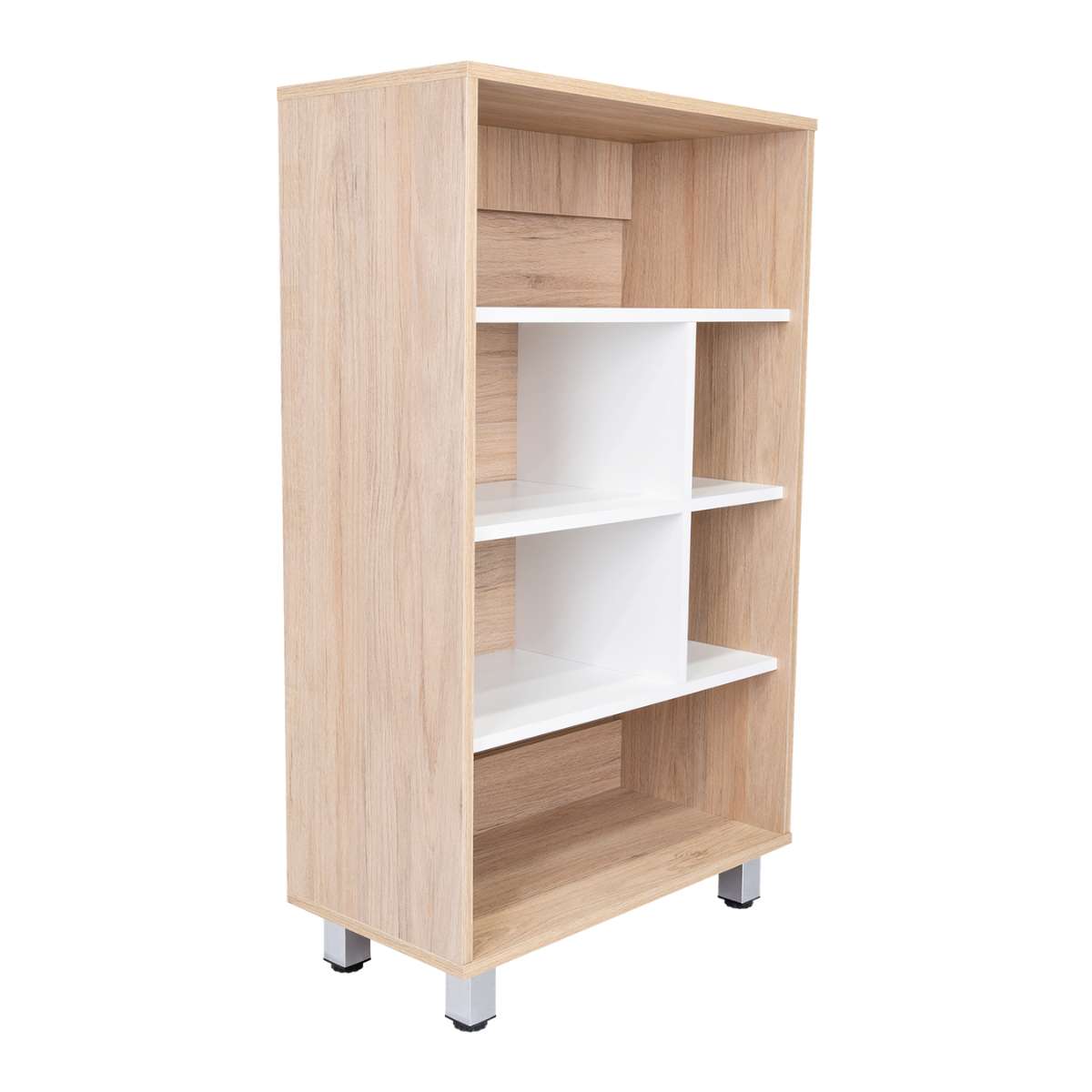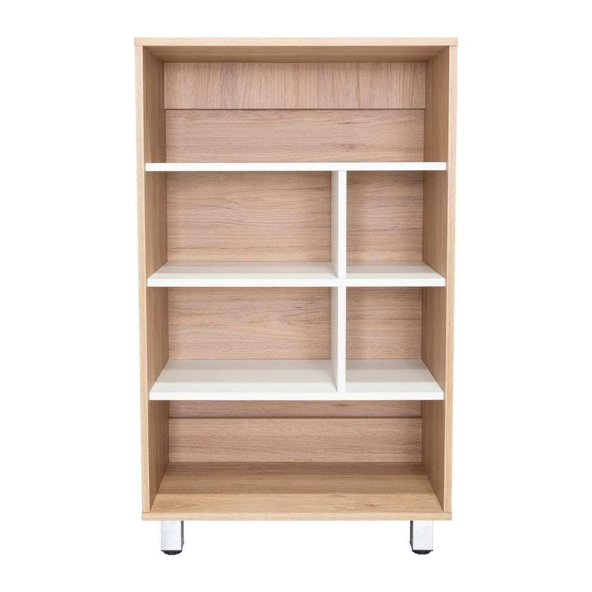 Su diseño es moderno. Tiene entrepaños para ubicar libros y múltiples objetos. Fácil armado.