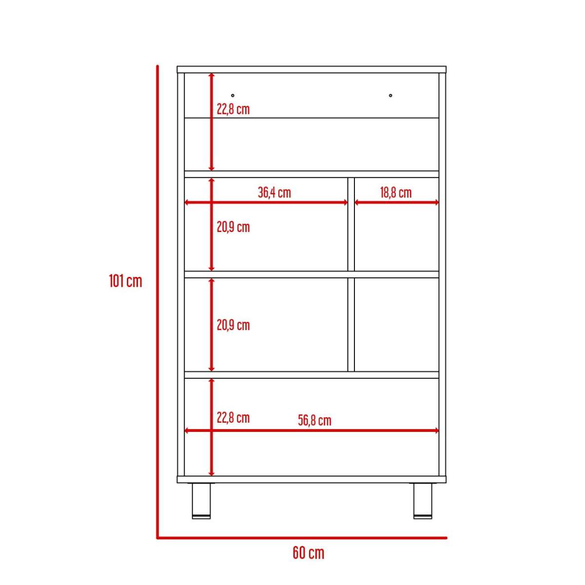 • Dimensiones (alto x ancho x profundo en cm): 101 x 60 x 30,6