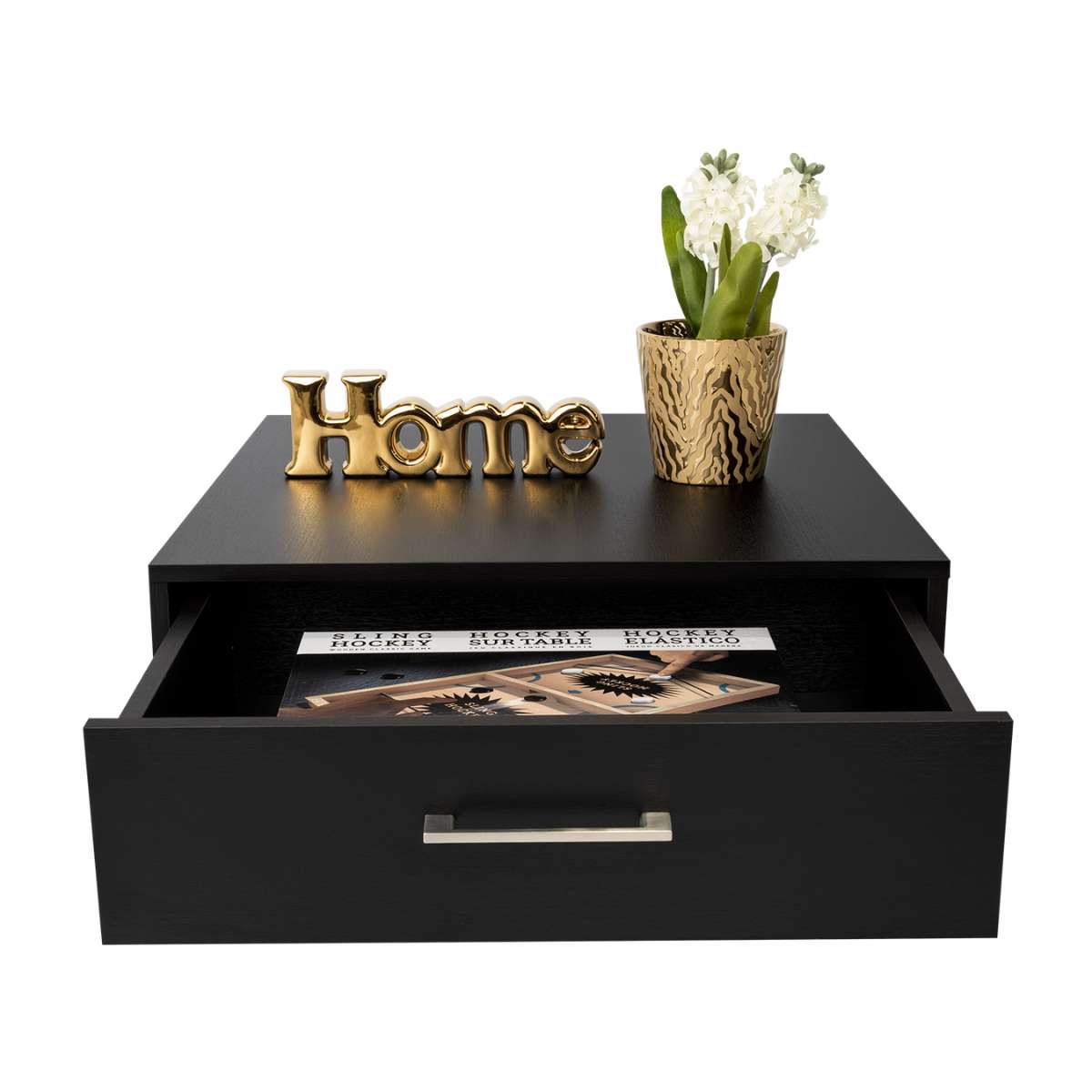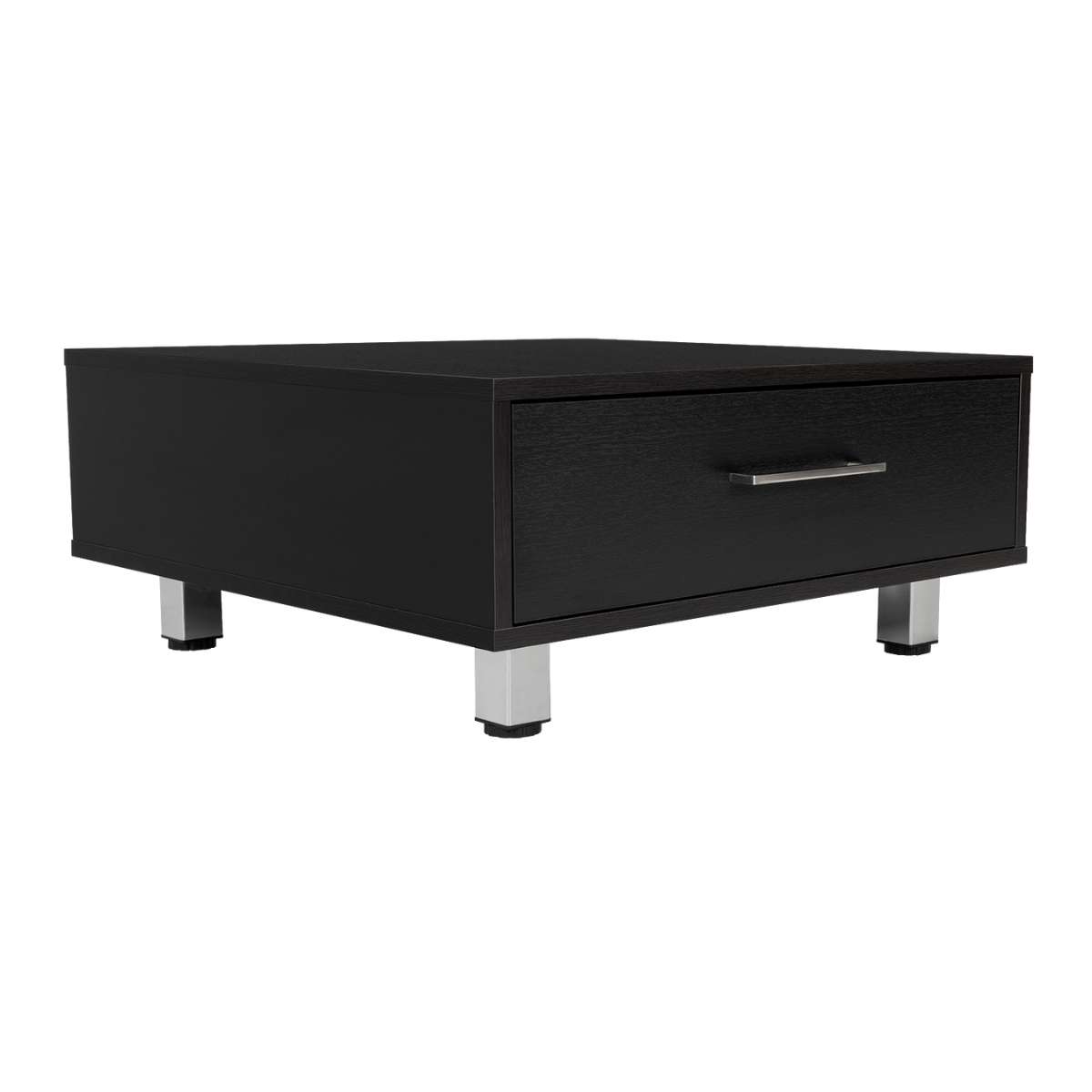Mesa de centro con diseño moderno, espacio para colocar objetos decorativos, cajón deslizable y espacio interior para guardar libros, revistas entre otros.